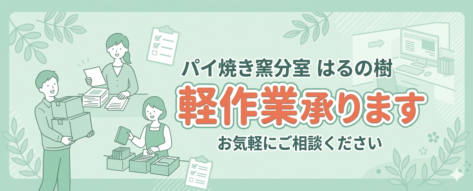 「働きたいけど体力に自信がない」「仲間と一緒に働いてみたい」「本格的な菓子づくりに挑戦したい」「清掃の技術を身につけたい」などをお考えの方、ぜひ見学に来ませんか?